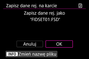 - Wybierz opcję [Zapisz dane rej. na karcie], aby zapisać zarejestrowane dane z aparatu na karcie.