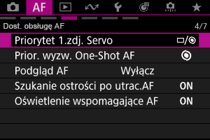 Możesz określić, czy w trybie One-Shot AF priorytetem będzie ustawianie ostrości czy czas wyzwalania (z wyjątkiem fotografowania z użyciem migawki dotykowej).