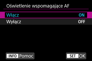 Wyłącza funkcję oświetlenia wspomagającego AF. Ustaw, jeśli nie chcesz, aby oświetlenie wspomagające AF było emitowane.
