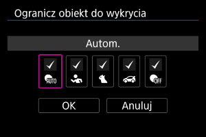 Możesz ograniczyć dostępne opcje ustawień w [: Obiekt do wykrycia] do preferowanych opcji. Wybierz opcję do wykluczenia i naciśnij