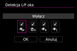 : Detekcja L/P oka] oznacza, że ustawienie domyślne zostało zmienione.