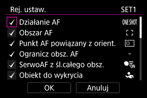 Wybierz ustawienia AF do zarejestrowania.