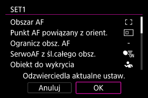 Rejestrowanie/przywoływanie ustawień związanych z AF
