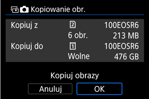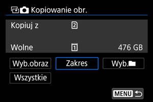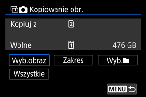 Kopiowanie obr.] spowoduje skopiowanie wszystkich obrazów znajdujących się w folderze lub na karcie.