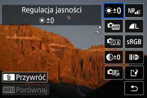 - Obróbka obrazów RAW za pomocą aparatu nie zapewnia dokładnie takich samych rezultatów jak obróbka obrazów RAW za pomocą oprogramowania Digital Photo Professional (oprogramowanie EOS).