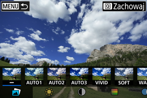 , możliwe jest wybranie [VIVID], [SOFT] lub innych zaprogramowanych ustawień efektów. [AUTO1], [AUTO2] i [AUTO3] to efekty zalecane przez aparat na podstawie warunków, w których rejestrowany jest obraz.