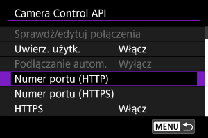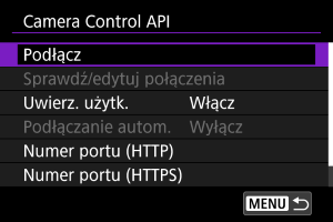 Korzystanie z interfejsu Camera Control API (CCAPI)