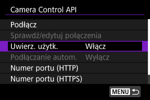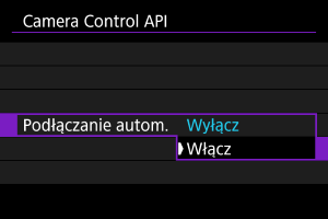 Wybranie opcji [Włącz] spowoduje automatyczne nawiązanie połączenia przy następnym uruchomieniu aparatu po jego wyłączeniu.