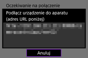 - Gdy na aparacie pojawi się powyższy ekran, należy użyć smartfona, komputera lub innego urządzenia, aby uzyskać dostęp do wskazanego adresu URL z aplikacji przeznaczonej do ustawienia aparatu.