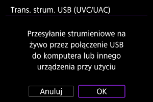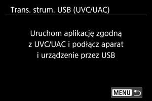 Wybierz tę opcję, jeśli będziesz używać aplikacji zgodnych z UVC/UAC przez połączenie USB z komputerem lub innym urządzeniem.