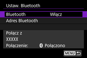 Można sprawdzić adres Bluetooth aparatu.