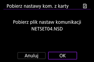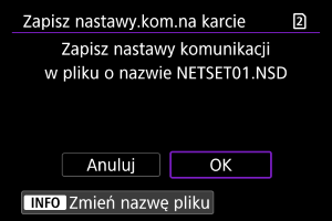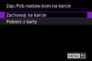 : Zachow/Pob.nastawy na karcie] umożliwia zapisanie wszystkich ustawień komunikacji w aparacie na karcie lub wczytanie wszystkich ustawień komunikacji z karty w innym aparacie.