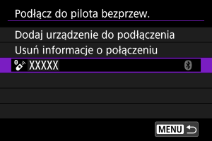 Ustawienia połączenia dla urządzeń, które połączono przez Wi-Fi lub Bluetooth są zachowywane w aparacie. Możesz użyć tych ustawień, aby ponownie połączyć się z tym samym urządzeniem.