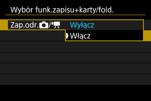 Wybierz opcję [Włącz], aby automatycznie skonfigurować metodę nagrywania zdjęć i filmów. Filmy są nagrywane na karcie , a zdjęcia na karcie