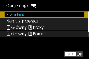 Jeśli dla [Opcje nagr. ] wybrano opcję [Standard]/[Autom.przeł.karty] lub [Opcje nagr.