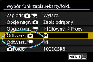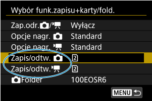 Jeśli włożono dwie karty, można wybrać metodę nagrywania i kartę do zapisywania i odtwarzania obrazów w sposób opisany poniżej.