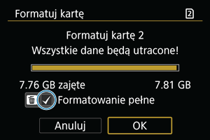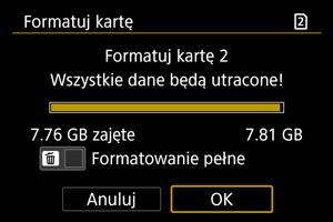 - Podczas pełnego formatowania można anulować formatowanie, naciskając przycisk [Anuluj]. Nawet w takim przypadku zostanie już ukończone formatowanie standardowe, co umożliwi normalne korzystanie z karty.