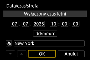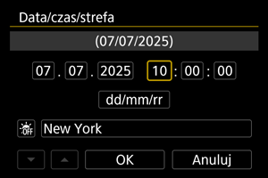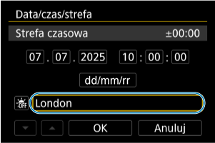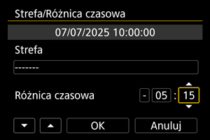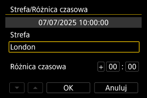 - Po zmianie [Strefa/Różnica czasowa] sprawdź, czy została ustawiona prawidłowa data/czas.