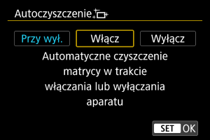 - Jeżeli ustawiono [Przy wył.] lub [Włącz], czujnik zostaje wyczyszczony gdy ekran się wyłączy, również wtedy, gdy został wyłączony automatycznie.