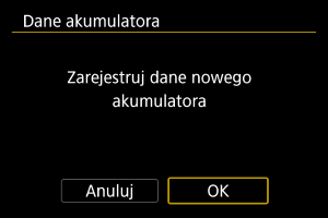 Użytkownik może zarejestrować do sześciu akumulatorów LP-E6P dla jednego aparatu. Aby zarejestrować kilka akumulatorów w danym aparacie, opisane poniżej procedury należy powtórzyć w przypadku każdego akumulatora.