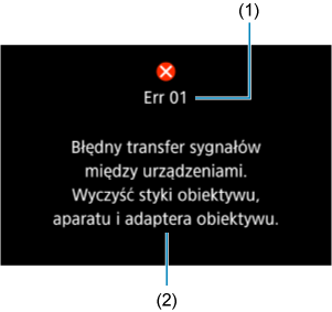 W przypadku wystąpienia problemu związanego z aparatem zostanie wyświetlony komunikat o błędzie. Postępuj zgodnie z instrukcjami wyświetlanymi na ekranie.