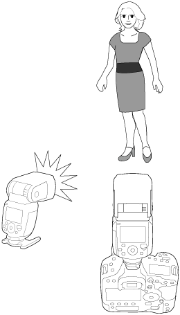 Esta secção descreve o disparo básico com flash sem fios totalmente automático, com um EL-1 (Ver.2) instalado na câmara como um emissor e um EL-1 (Ver.2) definido como recetor.