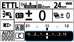 Defina o valor de compensação da exposição do flash para o grupo de disparo C.