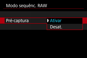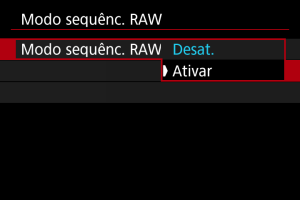 : Modo sequênc. RAW] para [Desat.] se ligar a câmara a um computador e utilizar a aplicação EOS Utility. Ao configurar para [Ativar] impede a câmara de comunicar com o computador.