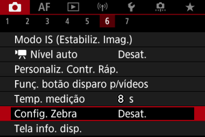 Para o ajudar a ajustar a exposição antes ou durante a gravação de um vídeo, pode visualizar um padrão listado por cima ou à volta de áreas da imagem com um brilho especificado.