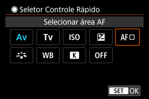 Mudar Áreas AF com o Selector de Controlo Rápido