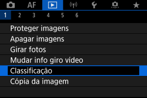 : Classificação], quando selecionar [Todas as imagens na pasta] ou [Todas as imagens no cartão], todas as imagens na pasta ou no cartão serão classificadas.