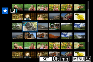 Durante a visualização das imagens no visor de índice, pode especificar a primeira e última imagens de um intervalo para classificar as imagens especificadas de uma só vez.