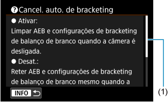 . Pressione-a novamente para sair do modo de visualização da Ajuda. Para percorrer o ecrã quando uma barra de deslocamento (1) aparece à direita, rode o seletor principal