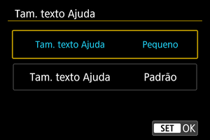 No caso da visualização de [ Ajuda], pode visualizar uma descrição da funcionalidade ao carregar no botão