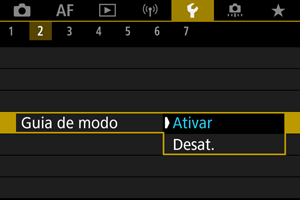 Pode ser apresentada uma breve descrição do modo de disparo quando muda de modo de disparo. A predefinição é [Ativar].