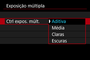 - Com [1 captura só], o disparo com exposições múltiplas é cancelado automaticamente quando acabar de tirar a fotografia.