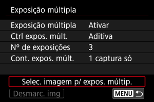 Com [Selec. imagem p/ expos. múltip.], pode selecionar a primeira fotografia com uma única exposição a partir das imagens gravadas no cartão (). Não é possível fundir várias imagens já gravadas no cartão.