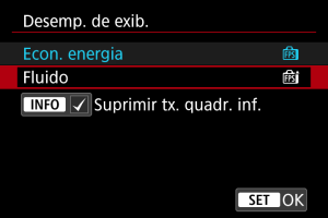 - Algumas condições de disparo e operações da câmara podem impedir a visualização suave e de alta taxa de fotogramas, mesmo quando definido como [Fluido].