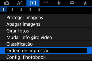 Selecione [Marcar todas na pasta] e especifique a pasta. É especificada uma ordem de impressão para uma cópia de todas as imagens na pasta.