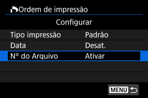 - Defina as opções [Tipo impressão], [Data] e [Nº do Arquivo].