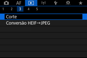 Pode recortar uma imagem JPEG captada e guardá-la como outra imagem. O recorte está disponível para imagens JPEG ou HEIF. As imagens RAW e as imagens captadas de fotogramas de vídeos 4K não podem ser recortadas.