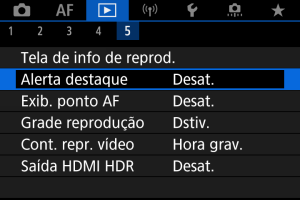Pode especificar a intermitência do ecrã para destaques sobre-expostos no ecrã de reprodução. Para obter uma gradação mais detalhada nas áreas intermitentes em que pretende que a gradação seja reproduzida fielmente, defina a compensação da exposição para um valor negativo e grave novamente para obter um resultado melhor.