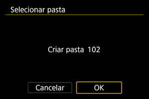 - As pastas são nomeadas como “100CANON”, com um número de pasta de três dígitos seguido de cinco letras ou números. Uma pasta pode conter um máximo de 9999 imagens (número de ficheiro 0001-9999). Quando uma pasta ficar cheia, uma nova pasta cujo número atribuído está uma unidade acima do anterior é criada automaticamente. Além disso, se executar um reinício manual (), uma nova pasta é criada automaticamente. Podem ser criadas pastas com números de 100 a 999.