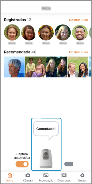 Na tela inicial, é possível verificar dois tipos de mensagens da câmera: mensagens de comunicação e de erro. No caso de erros, verifique as mensagens.