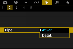 Desativa o sinal sonoro para operações de focagem, temporizador automático, obturador e táteis.