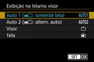 - Com [AUTO1] definida, a câmara não responde ao sensor do visor quando o ecrã está aberto.