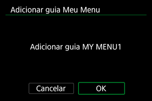Pode eliminar o separador atual O Meu Menu. Selecione [Excluir guia] para eliminar o separador [MY MENU*].