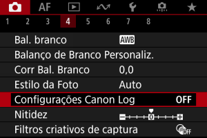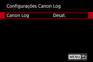 : Configurações Canon Log] definido para [At. (