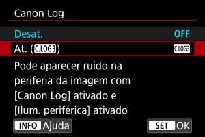 : Configurações Canon Log].