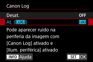 : Correção de desvio da lente] estiver definida para [Ativar] quando o Canon Log estiver ativo.